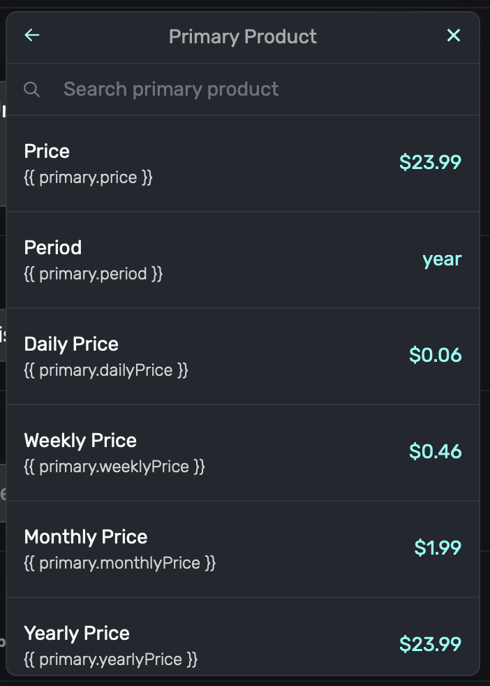 You can show product, user, or device data within text elements by adding a Variable. This uses a language called Liquid to substitute in data at runtime.